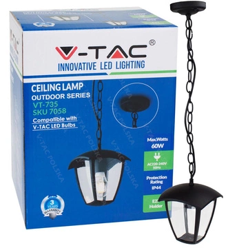 Wisząca lampa ogrodowa pojedyncza VT-735 czarna
