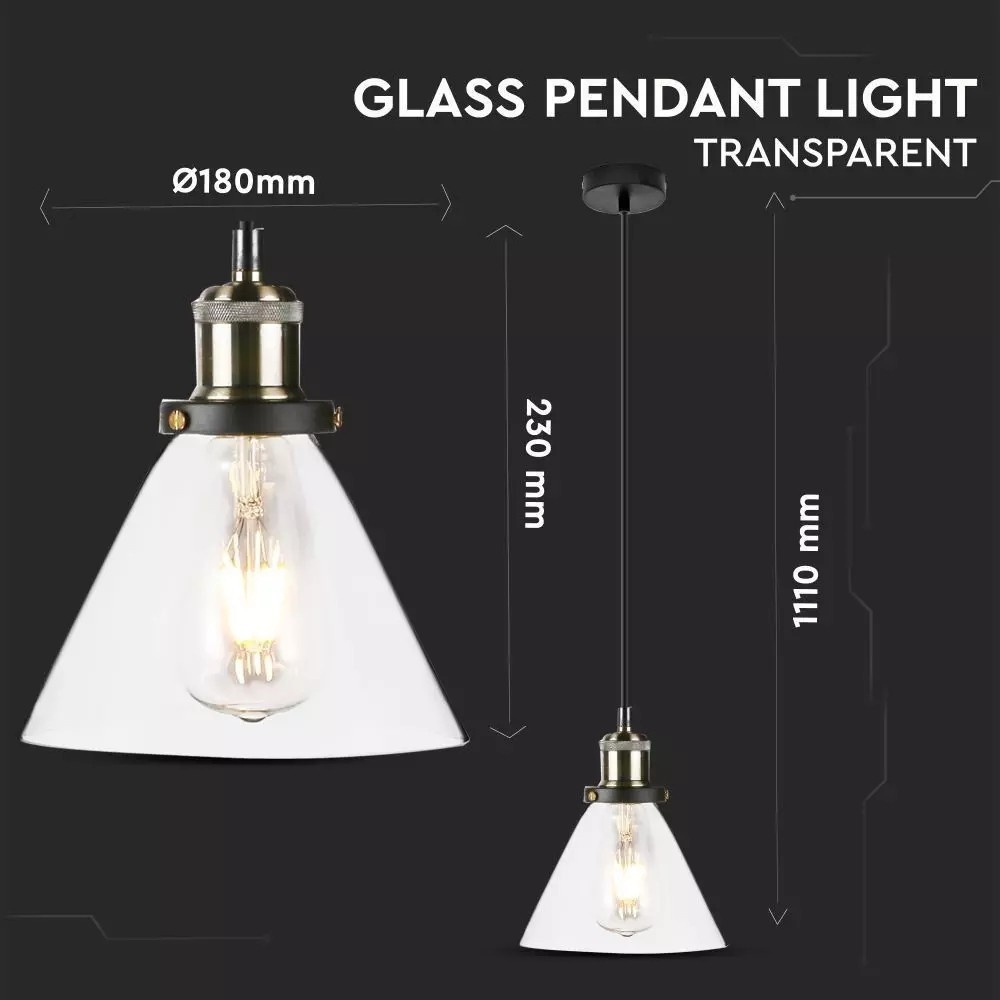 Prosta, inspirowana XX wiekiem lampa wisząca stanowi elegancką i funkcjonalną ozdobę każdego wnętrza. Idealnie pasuje do pomieszczeń w stylu vintage, industrial, skandi, stylu nowoczesnego. Wysokiej jakości metalowa oprawka E27 pozwala na montaż tradycyjnych żarówek max 60W lub nowoczesnych źródeł światła typu LED FILAMENT. Masywny, szklany klosz ma średnicę Ø180 mm, wysokość wynosi 230 mm. Całkowita wysokość żyrandolu 1100 mm może zostać skrócona.