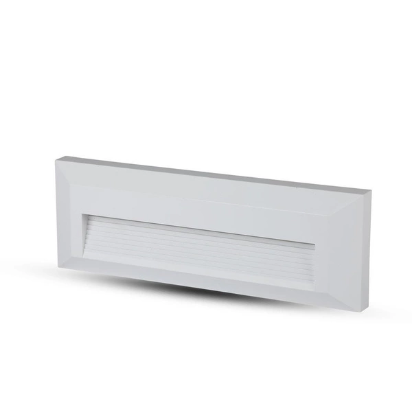 Natynkowa oprawa schodowa LED marki V-TAC® przeznaczona jest do podświetlania korytarzy i klatek schodowych. Lampa mocy 3W emituje 110 lm i jest odpowiednikiem 15W halogenu. Źródłem światła są wydajne diody SMD 2835. Model VT-1162 ma obudowę w kolorze białym. Świtało emitowane jest pod kątem 55°. Halogen ma wysoki wskaźnik oddawania barw CRI Ra>80. Panel LED posiada wbudowany zasilacz DC oraz kołki rozporowe. Wymiary 230 x 80 x 27 mm. Gwarancja 24 miesiące.