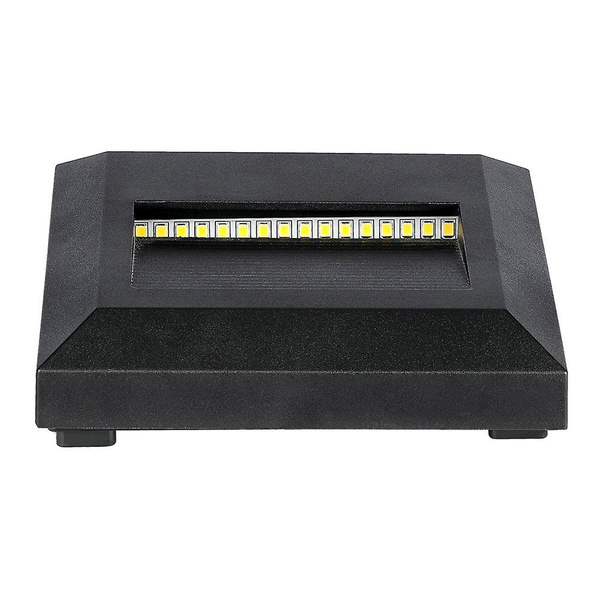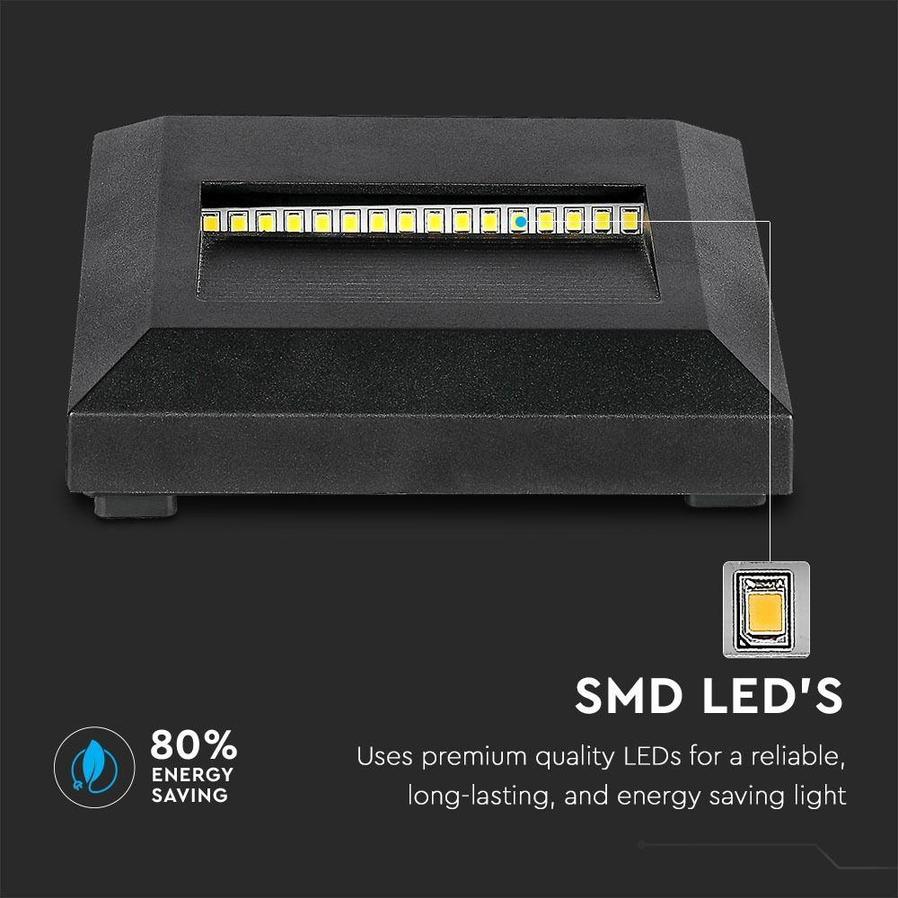 Natynkowa oprawa schodowa LED marki V-TAC® przeznaczona jest do podświetlania korytarzy i klatek schodowych. Lampa mocy 2W emituje 60 lm i jest odpowiednikiem 10W halogenu. Źródłem światła są wydajne diody SMD 2835. Model VT-1152 ma obudowę w kolorze czarnym. Świtało emitowane jest pod kątem 55°. Halogen ma wysoki wskaźnik oddawania barw CRI Ra>80. Panel LED posiada wbudowany zasilacz DC oraz kołki rozporowe. Wymiary 124 x 124 x 27 mm. Gwarancja 24 miesiące.