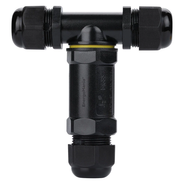 Instalacyjne złącze kablowe CableGuard marki EnergoMania® to profesjonalne rozwiązanie do zabezpieczania połączeń przewodów elektrycznych w wymagających warunkach - pod ziemią, a nawet zanurzone w wodzie. Mufa instalacyjna T-Joint 5W pozwala na wprowadzenie 5 kabli średnicy 8-12 mm. Jej jakość potwierdza szereg międzynarodowych certyfikatów CE, RoHS, UKCA, TÜV i ENEC.
