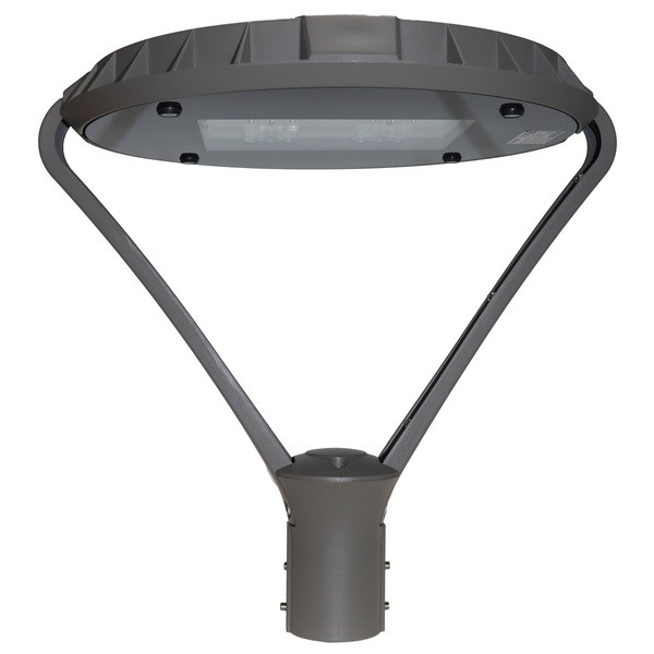 Lampa LED mocy 120W generuje 16800 lumenów, oferując szerokokątny rozsył światła (120°). Wysoki wskaźnik oddawania barw (CRI Ra>80) zapewnia naturalne odwzorowanie kolorów. Montaż lampy na słupie z rurą o maksymalnej średnicy 66 mm. Wymiary lampy to 500 x Ø450 mm. Gwarancja wynosi 60 miesięcy, a żywotność to aż 50 000 godzin (L70B50).