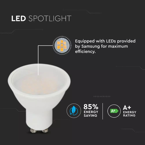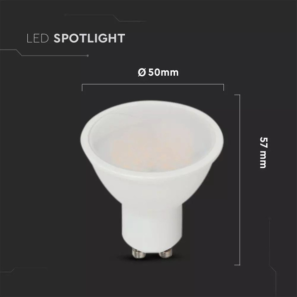 Żarówka LED VT-271 marki V-TAC® ma moc 10W i gwint GU10. Oparta jest na wydajnych i trwałych diodach SAMSUNG. Źródło światła posiada wysoki wskaźnik oddawania barw CRI: Ra>80. Generowany strumień świetlny wynosi ponad 1000 lm - odpowiednik 80W żarówki. Energooszczędne źródło świtała ma kąt świecenia 110°. Wymiary Ø50 x 55 mm. Gwarancja 60 miesięcy.