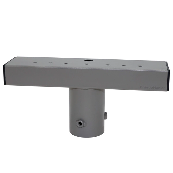 Seria solidnych uchwytów TopGrip marki EnergoMania® znacząco ułatwia i przyspiesza instalację kamer i naświetlaczy LED na słupach oświetleniowych. Mocowanie w kształcie litery T posiada 7 nagwintowanych otworów M6 oraz przepust kablowy, co czyni je bardzo uniwersalnym.Mocna i pewna konstrukcja